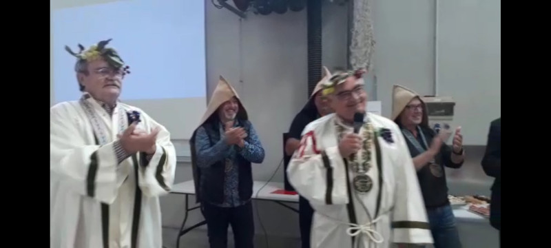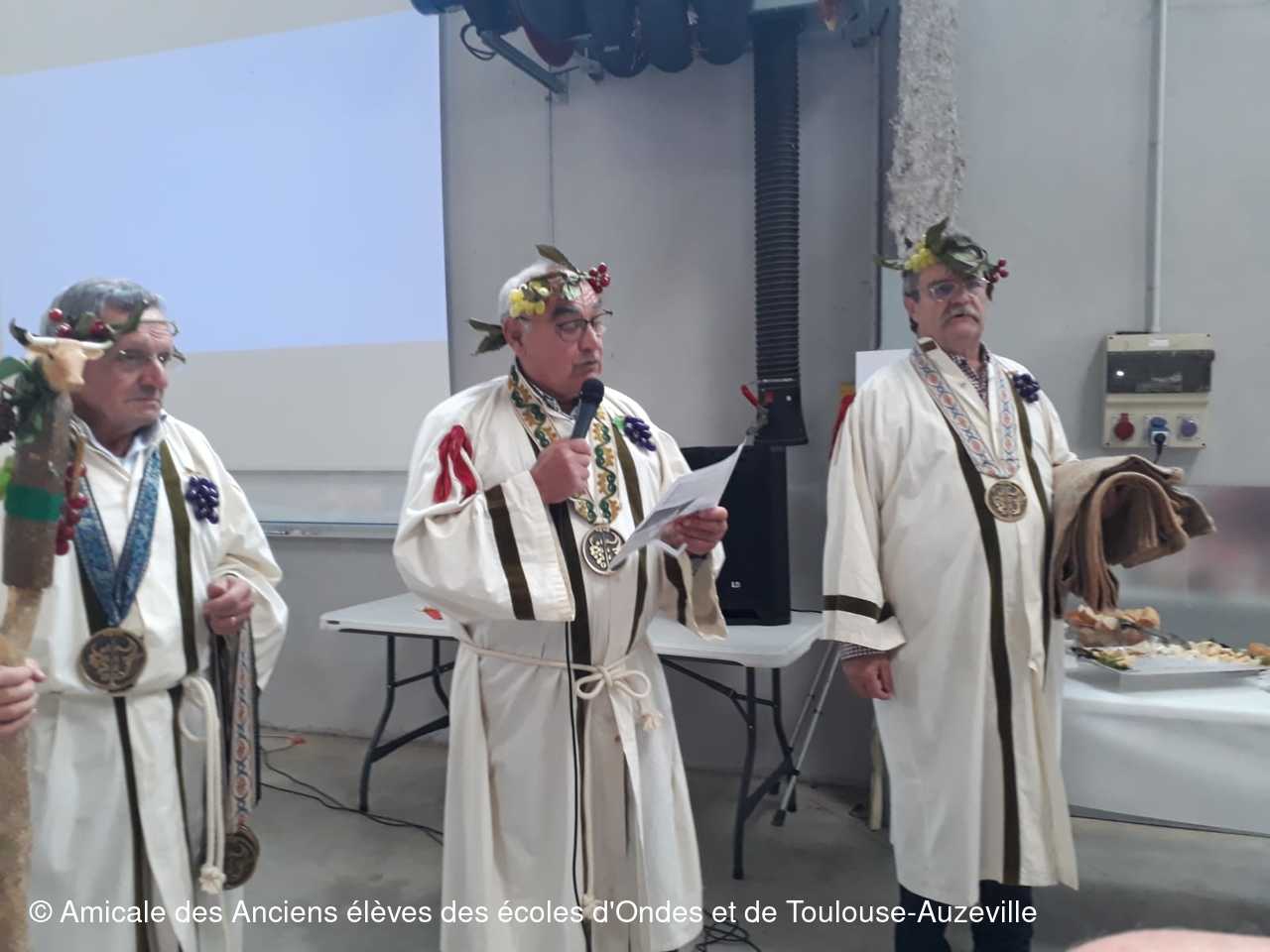 Ci-dessous autour de notre Grand Chambellan, Michel TESTARD, grand maïtre de cette cérémonie, on peux voir les cinq nouveaux intronisés 2022, à savoir de G. à D., Pierre DELPERIE, professeur Agro-Equipement au lycée d'Auzeville, Philippe FRARESSO BTS PV 1988 et membre de votre CA, Adrien COMBES BTAG 1975 et nouveau référent de rpomotion, Guy VEDELAGO BTS PV 1969 et membre du CA, enfin Nicolas BASTIE, proviseur du Lycée d'Auzeville depuis septembre 2020, tous nos cinq nouveaux entrants dans le fameux Ordre des Bucoliques, haute disctinction de notre Amicale, qui honore des anciens rendants des grands services à votre Amicale. Avis aux amateurs, il ne vous reste plus qu'à devenir "référent" de votre promotion, et de la réunir en très grand nombre en ocotobre 2023.